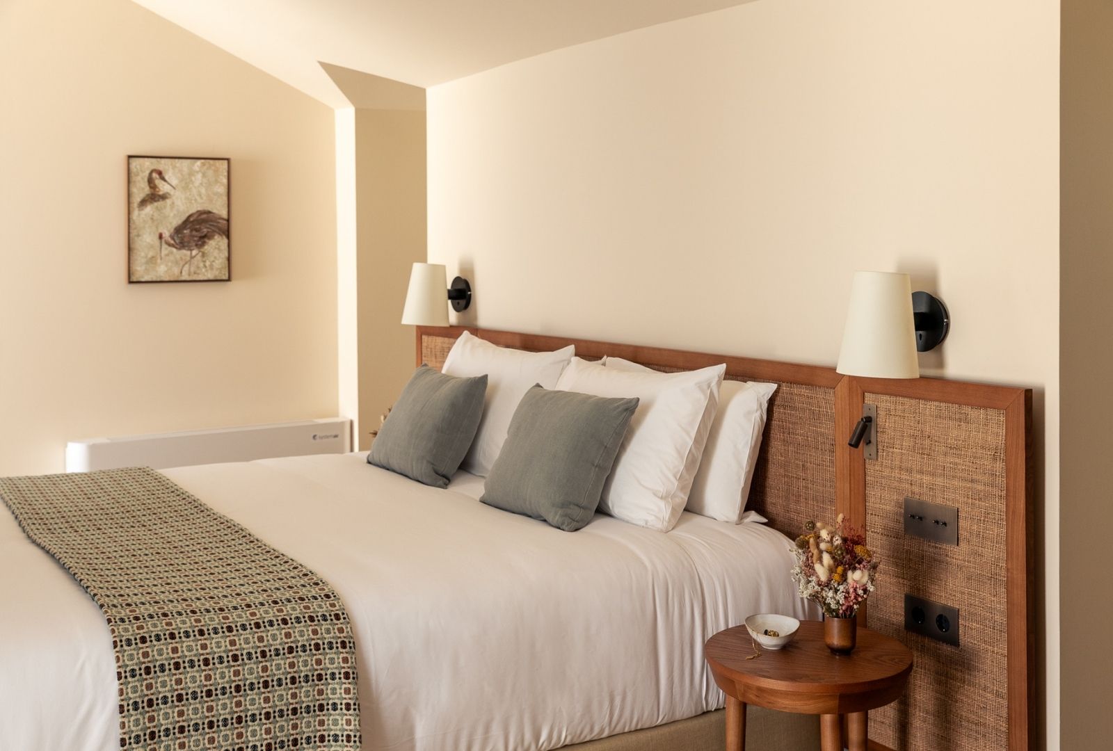 Encanto sob o telhado. Tetos inclinados, luz suave, acabamentos em madeira... 22m² que se transformam num esconderijo secreto. Íntimo, acolhedor, distinto. A atmosfera convida a ficar dentro, abrandar o ritmo, olhar pela janela sem fazer nada. Ideal para uma escapadinha a dois ou para quem aprecia espaços com carácter. Um quarto que se sente mais como refúgio do que passagem.